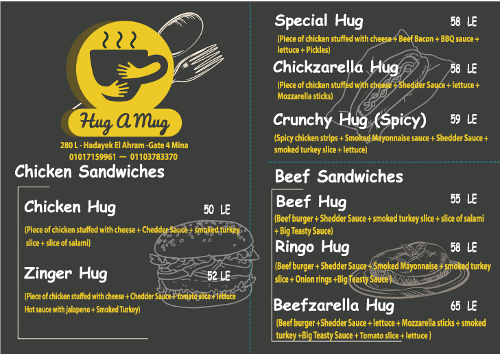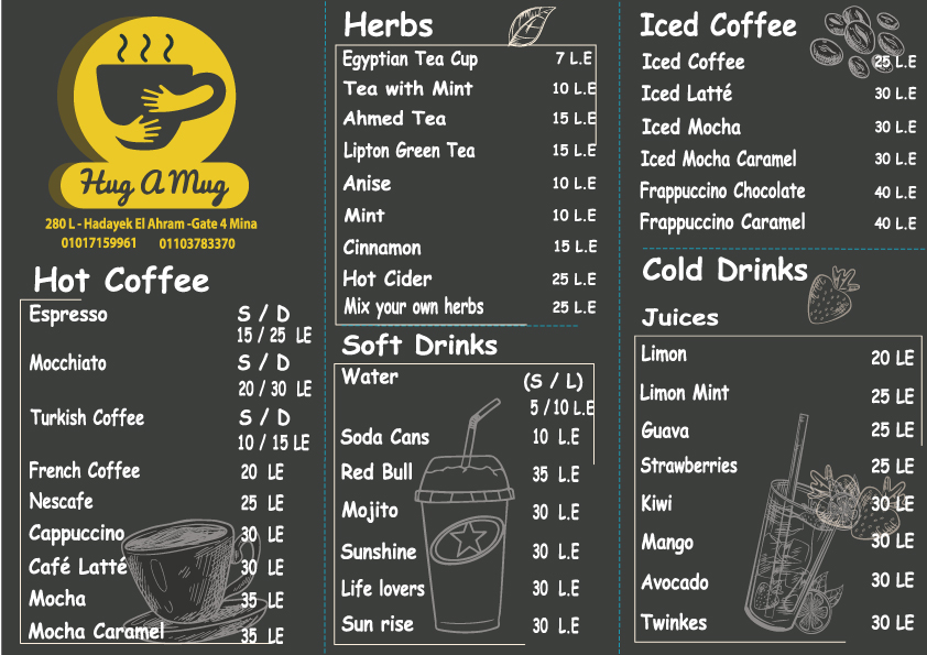 Welcome to Hug A Mug, a delightful café nestled in the heart of Tamr Henna Mall in Giza, Egypt. This charming spot offers a unique blend of cozy comfort and an inviting atmosphere that makes it a perfect destination for both casual gatherings and intimate catch-ups with friends and family.